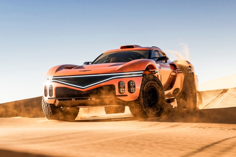 Премиальный бренд Genesis, принадлежащий Hyundai Motor Group, представил концептуальный внедорожный суперкар X Skorpio, который в теории может превратиться в мелкосерийную модель суббренда Magma. Премиальный бренд Genesis отделился от материнской марки Hyundai в 2015 году, в 2021 году его глобальные продажи впервые превысили 200 000 машин, но затем забуксовали, несмотря на то, что Hyundai Motor Group вкладывает в развитие модельного ряда Genesis огромные деньги. В 2025 году Genesis реализовал во всём мире 221 482 автомобиля, что на 3,5% меньше продаж в 2024 году. Чтобы выбраться из застоя, Genesis ищет новые для себя ниши в двух генеральных направлениях — внедорожники и спорткары. Для спорткаров в 2024 году был запущен суббренд Magma — аналог подразделений Audi Sport, BMW M и Mercedes-AMG. Предтечей первого полноценного внедорожника от Genesis стал показанный в прошлом году концепт Genesis X Gran Equator. Ну а представленный сегодня концепт Genesis X Skorpio показывает, что может получиться на стыке внедорожного и спортивного направлений развития бренда. Genesis X Skorpio, как утверждается, вдохновлён чёрным скорпионом, жутковатым на вид обитателем пустынь, поэтому правильный цвет для этой машины чёрный, но фирменный оранжевый цвет суббренда Magma подходит этой машине не меньше. Конструктивно Genesis X Skorpio представляет собой внедорожный суперкар в стиле ралли-рейдового болида, поэтому у него очень прочный кузов с интегрированным каркасом безопасности на случай кульбитов, а внешняя обшивка, выполненная из стеклопластика и карбон-кеврала, нарочно фрагментирована для удобства замены. Бронебойная подвеска с огромными ходами рассчитана на прыжки и удары. Огромные 40-дюймовые шины с «зубастым» протектором обуты на 18-дюймовые легкосплавные колёса с бедлоками. Надёжное замедление обеспечивают дисковые тормоза от Brembo Motorsport. Днище укрыто прочными защитными пластинами, чтобы машину можно было в случае чего уверенно тащить на «брюхе». Ну а самое интересное здесь — это двигатель: за двухместным салоном установлен новый V8, выдающий 1115 л.с. и 1152 Нм. Вероятно, это тот самый двигатель, что получит грядущий серийный дорожный суперкар Genesis Magma GT. Салон у Genesis X Skorpio оформлен куда более изящно, чем принято у машин такого сорта, — например, у Prodrive Hunter. Команда дизайнеров во главе с креативным директором Genesis Люком Донкервольке умудрилась привить премиальный лоск сугубо утилитарному убранству ралли-рейдового болида. В отделке много высококачественной замши и кожи, обитые ей упорные валики смягчат удары при езде. Настраиваемый электронный щиток приборов вмонтирован прямо в руль, а мультимедийно-штурманский дисплей имеет складную конструкцию и может перемещаться вдоль передней панели. Пресс-служба Genesis пока ничего не говорит о серийных перспективах X Skorpio, но с учётом того что бренд Genesis намерен участвовать в ралли-рейдах, можно ожидать, что если это участие окажется успешным, то Hyundai Motor Group захочет этот успех монетизировать и выпустит нечто в духе Genesis X Skorpio небольшим тиражом за большие деньги. То есть потенциально это прямой конкурент вышеупомянутому Prodrive Hunter.