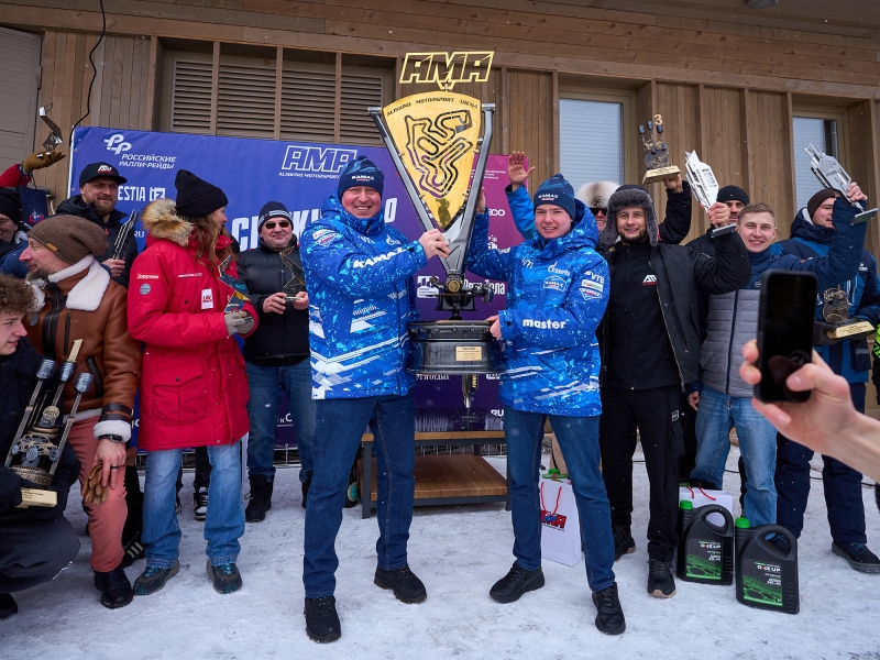 15 февраля в гоночном комплексе «Алискино Мотоспорт Арена» (Московская область, Можайский городской округ) завершилась зимняя баха «Снежная битва 2.0». Два дня, пять спецучастков, более 200 километров и почти три десятка экипажей – уикенд выдался по-настоящему горячим, несмотря на мороз. В воскресенье столбик термометра опустился до -12, трасса стала быстрее и жестче, а судьба подиума, как и положено в ралли-рейде, решилась лишь на финишной прямой. В этом году баха получила статус чемпионата Московской области и, можно сказать, приняла эстафету легендарного «Северного леса». Снежные трассы, коварные ледовые участки и перепады температур – от почти плюсовой отметки до крепкого минуса – обеспечили участникам полный спектр зимних приключений. По итогам первого дня уверенное лидерство в абсолюте захватил экипаж «КАМАЗ-мастер» Богдана Каримова и Дмитрия Никитина. На Can-Am Maverick R XRS они создали солидный задел, опережая ближайших преследователей из ATVARMOR Racing почти на семь минут. Казалось, интрига угасла, но финальный день преподнес свои сюрпризы. Экипажи Павла Журавлева и Егора Охотникова, а также Андрея Бокши и Ивана Безденежных на четвертом спецучастке бросились отыгрывать упущенное накануне. Шанс им дала техника: у лидирующего Can-Am Каримова заклинило термостат, мотор начал перегреваться, не позволяя выжимать газ в полную силу. На СУ4 челнинцы уступили соперникам три минуты. После короткого визита в сервисный парк перед СУ5 на финальном спецучастке развернулась настоящая «снежная битва» за золото. Андрей Бокша атаковал без оглядки, сократив отставание еще на пару минут, но этого не хватило, чтобы догнать экипаж «синей армады». В итоге Богдан Каримов и Дмитрий Никитин, удержав полутораминутный перевес, поднялись на высшую ступень подиума. Очень интересные были два дня: скоростные узкие трассы, где требуется высокая концентрация и надо ехать в ритме. Рабочие спецучастки: закрученные повороты, кочки, места, где можно было вылететь в деревья. Очень разнообразная трасса, и была задача ехать стабильно и довезти машину до финиша. Старались держать высокий темп. У нас, правда, были технические неисправности: у автомобиля сегодня заклинило термостат и двигатель начал греться, не давая развивать скорость. Но у нас был запас времени после вчерашнего дня, мы этим воспользовались и смогли сохранить преимущество и не навредили машине и довезли ее до финиша. Получилось классное соревнование, была высокая борьба, и мы благодарим организаторов за предоставленную возможность. Конечно, багги шустрее привычных для меня КАМАЗов, и она позволяет ехать быстро, но тут главное – не переборщить со скоростью, чтобы не перевернуться. Богдан Каримов пилот «КАМАЗ-мастер» Пилоты ATVARMOR Racing оккупировали оставшиеся места на пьедестале: серебро взяли Андрей Бокша и Иван Безденежных, бронза досталась Павлу Журавлеву и Егору Охотникову (отставание от лидера — 5,5 минуты). Как всегда, много эмоций! Гонка понравилась, трасса каждый день была разнообразная, и проблемы были тоже разные. Отличная гонка, сильные соперники, получили море удовольствия. В первый день мы совершили ряд ошибок, было достаточно нервно, много рисковали и пытались нагнать упущенное. Финишировали с большим отставанием от Богдана. Цель была сегодня рисковать меньше, сохранить вторую позицию и нагнат