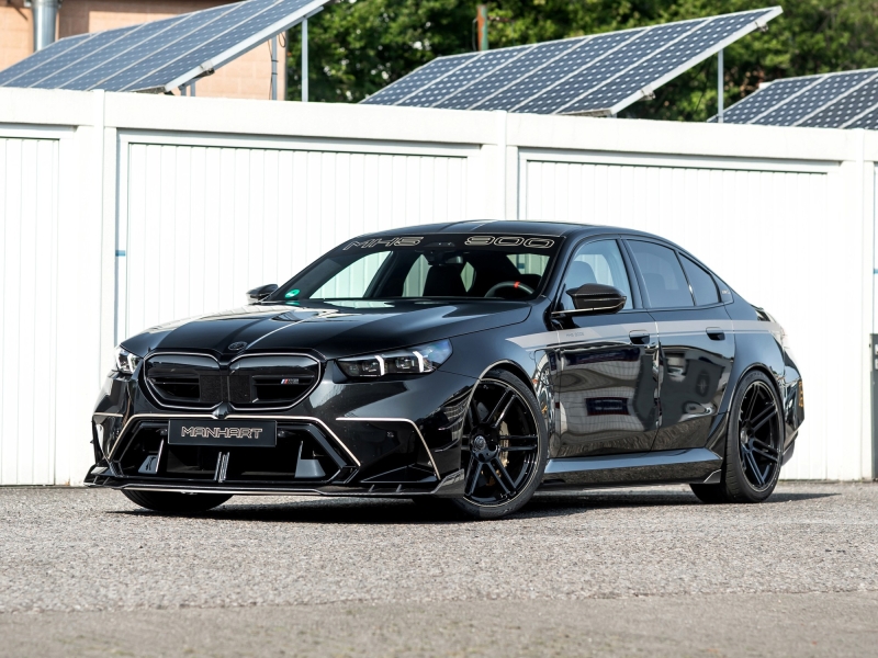 Германское тюнинг-ателье Manhart Performance представило свой взгляд на BMW M5 последнего поколения: тяжёлый гибридный седан получил заметную прибавку в мощности и довольно элегантный карбоновый обвес, делающий его внешность чуть более удобоваримой. Гибридный седан BMW M5 поколения G90 дебютировал летом прошлого года и был с большим скепсисом встречен ортодоксальными поклонниками баварской марки — страшный, тяжёлый (снаряженная масса — 2435 кг), дорогой (в Германии — от 144 400 евро), медленнее предшественника (было 3,3 с до «сотни», стало 3,5 с). Тюнеры, как водится, могут исправить некоторые врождённые недостатки любой модели: три месяца назад свой вариант апгрейда для нового BMW M5 представило тюнинг-ателье Mansory, а на этой неделе подоспел альтернативный проект от Manhart, получивший имя MH5 900E. Если Mansory сделала новый BMW M5 ещё уродливее, то обвес от Manhart слегка скрашивает визуальную тяжеловесность стокового седана. В комплект входят новый передний спойлер, боковые канарды, накладки на пороги, «шапочки» для зеркал, спойлер над задним стеклом, более развитый спойлер на крышке багажника и более развитый диффузор в заднем бампере. Светлые декоративные полоски на чёрном кузове визуально задают новую геометрию поверхностей и делают бамперы как бы более воздушными. Ажурные кованые колёса Manhart Concave One больше стоковых на дюйм и тоже визуально облегчают образ баварского седана. Manhart вдобавок предлагает на выбор два варианта занижения подвески — с компонентами H&R либо KW Suspensions. Стоковые карбон-керамические тормоза у BMW M5 и так достаточно мощные, но по желанию заказчика Manhart может установить ещё более крупные диски с многопоршневыми суппортами. Plug-in гибридная силовая установка BMW M5 в стоке выдаёт 727 л.с. и 1000 Нм, а после прокачки в Manhart — 910 л.с. и 1200 Нм. Прирост производительности обеспечили исключительно упражнения с 4,4-литровым мотором V8 (повышение давление наддува, новая программа управления), электрическую часть силовой установки специалисты Manhart не трогали. Новая выхлопная система из нержавеющей стали звучит ярче стоковой. Салон остался, по сути, стандартным, от Manhart ему достались только новые коврики и новая обивка потолка чёрной алькантарой. Если стоковая отделка других деталей не устраивает, Manhart может предложить полный перешив салона. Стоимость Manhart MH5 900E на сайте тюнера не указана.