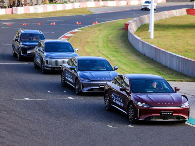 16 октября на Шанхайском международном автодроме «Тяньма» в рамках Международной экологической конференции Exeed состоялся масштабный тест-драйв. Программа включала заезды по трассе и статическую экспозицию, где гости могли лично оценить технологические решения бренда. В ходе конференции бренд Exeed также представил новую стратегию развития. Новинка Exeed Exlantix ES BEV разгоняется до 100 км/ч за 3,7 секунды. Крутящий момент силовой установки электрокара – 660 Н·м, а коэффициент аэродинамического сопротивления – всего 0,205. Модель получила интеллектуальную пневмоподвеску (IAS) и систему адаптивных амортизаторов (CDC), которые регулируют высоту подвески и жёсткость демпфирования в зависимости от дорожных условий, обеспечивая стабильность и управляемость на высоких скоростях. Exeed Exlantix ET BEV развивает пиковую мощность 353 кВт и разгоняется до 100 км/ч за 4,8 секунды. Благодаря подвеске с двойными поперечными рычагами и интеллектуальным системам IAS и CDC (с частотой регулировки 1 раз в секунду) автомобиль сохраняет стабильность даже при агрессивном прохождении поворотов. Минимальный радиус разворота – 5,65 м. В сегменте гибридов Exeed в формате тест-драйва продемонстрировал новые модели – Exeed Exlantix ET REEV и Exeed RX PHEV, а также представленные на статической выставке VX PHEV и E01 PHEV, которые сформировали полную гибридную линейку бренда. Exeed Exlantix ET оснащён технологией расширенного диапазона хода (REEV) с рекордной для серийных моделей тепловой эффективностью 44,5%. Совокупная мощность силовой установки – 345 кВт, разгон до 100 км/ч – 4,9 секунды (5,7 секунды – с разряженной батареей). Автомобиль получил два электромотора и интеллектуальную систему полного привода. Полный привод на Exeed RX PHEV реализован при помощи четырёх электромоторов. Совокупная мощность силовой установки достигает 395 кВт, крутящий момент – 650 Н·м, разгон до 100 км/ч занимает 4,9 секунды. Запас хода превышает 1300 км. Помимо динамических характеристик, Exeed продемонстрировал достижения в области интеллектуальных систем, включая функции VPD (дистанционная парковка) и RPA (помощник парковки с пульта управления), доступные на моделях Exeed Exlantix ET и Exeed Exlantix ES. Функция VPD позволяет дистанционно припарковать автомобиль: система сама ищет свободное место, паркуется, блокирует двери и выключает зажигание. Через мобильное приложение можно активировать «интеллектуальный вызов» и автомобиль сам выедет к водителю. Функция RPA решает проблему парковки в узких пространствах: автомобиль можно поставить или вывести с места с помощью ключа или Bluetooth, что особенно удобно в городских условиях. В рамках первого дня конференции Exeed впервые показал гостям новые модели E02 и MX. E02 отличается дизайном с фирменной решёткой радиатора и плавными линиями кузова, а MX получила световую полосу из 472 светодиодов и колёсные диски, создающие эффект мерцающего света даже в статике. В будущем Exeed планирует вывести линейку на новых источниках энергии на международные рынки, где автомобили бренда предложат покупателям ещё больше современных решений.Электромобили